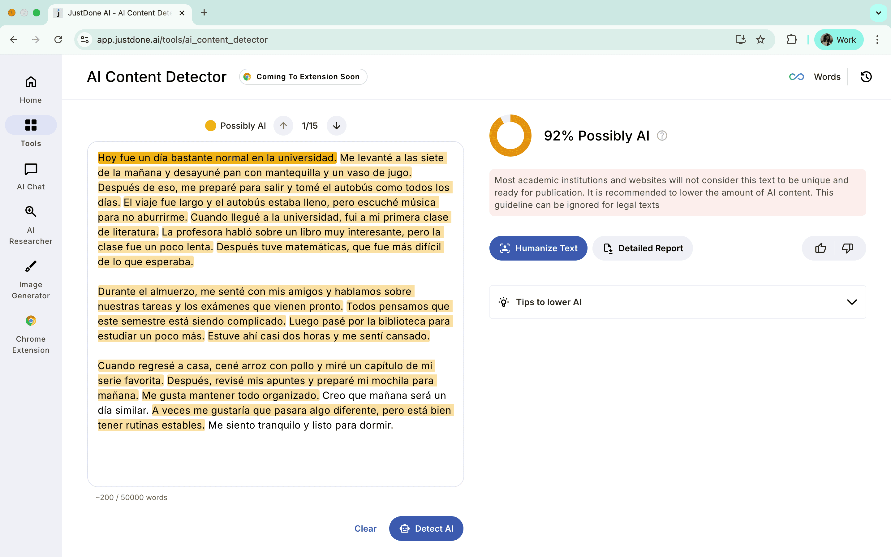 When you use the JustDone multilingual AI humanizer, it respects cultural tone and adjusts the structure of your text to sound like a real person wrote it. I tested it with Spanish essays and found that it kept casual phrases intact while still improving the grammar. The initial piece was flagged as 92% AI-generated.