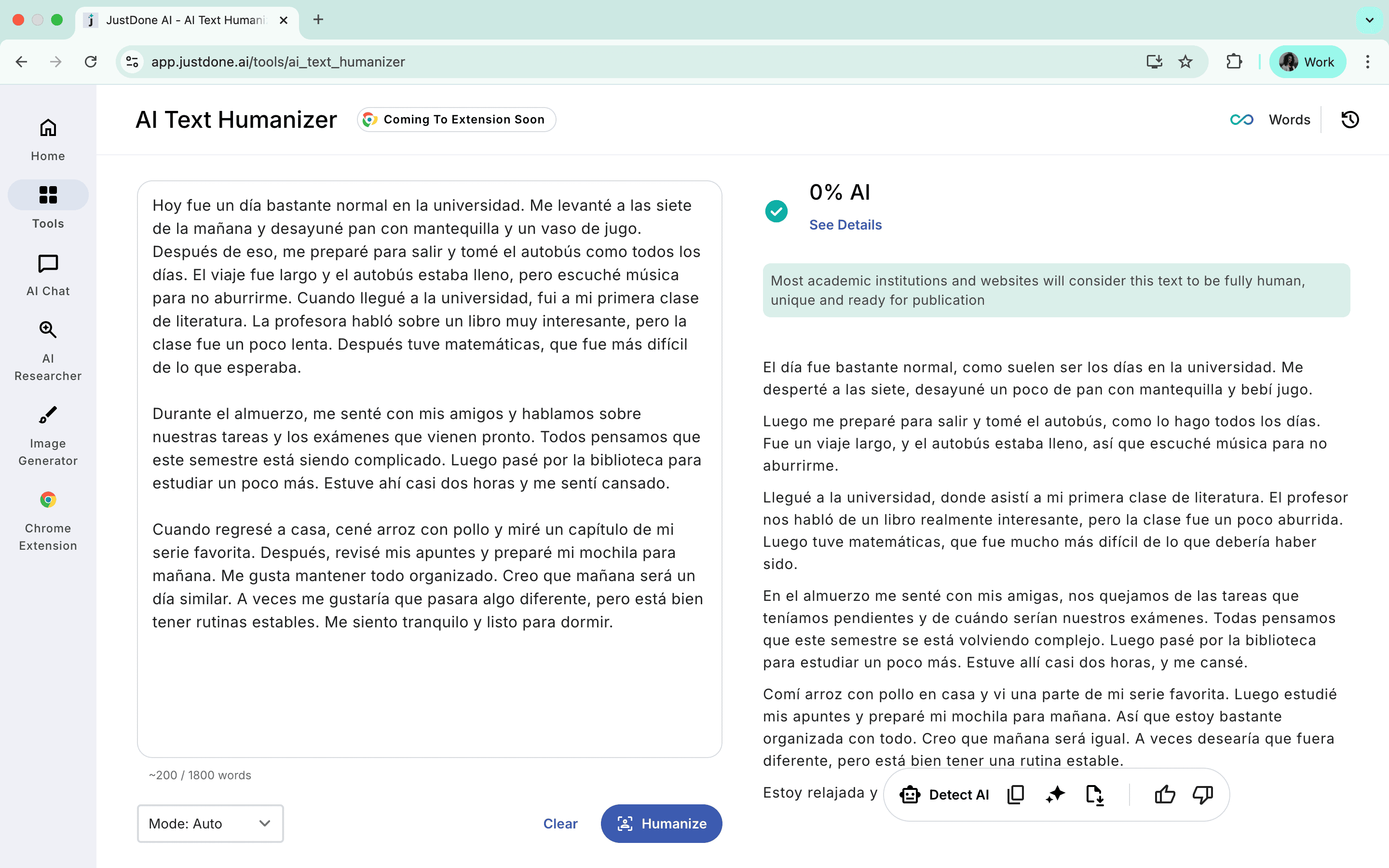 That’s one of the reasons I recommend JustDone humanizer to my students. It doesn’t just translate. It makes text really human.