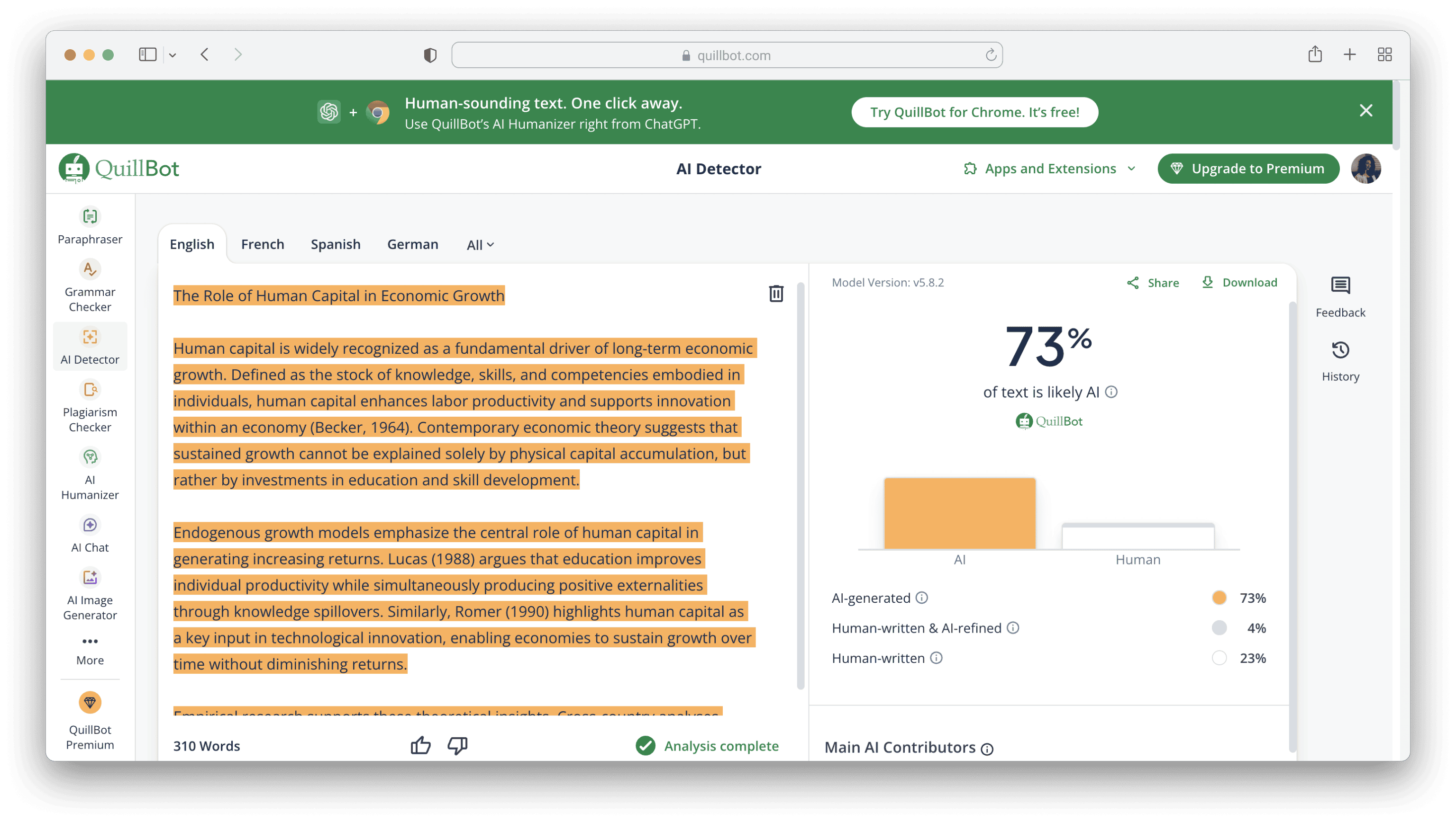 Let's compare all tools, detecting and humanizing the same academic essay about human capital.