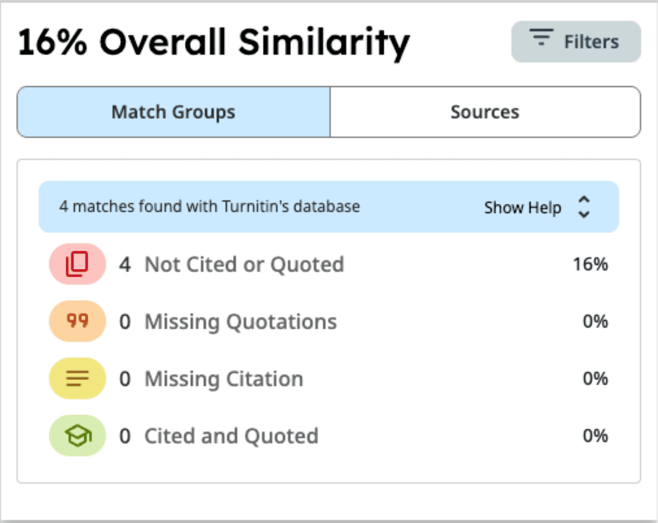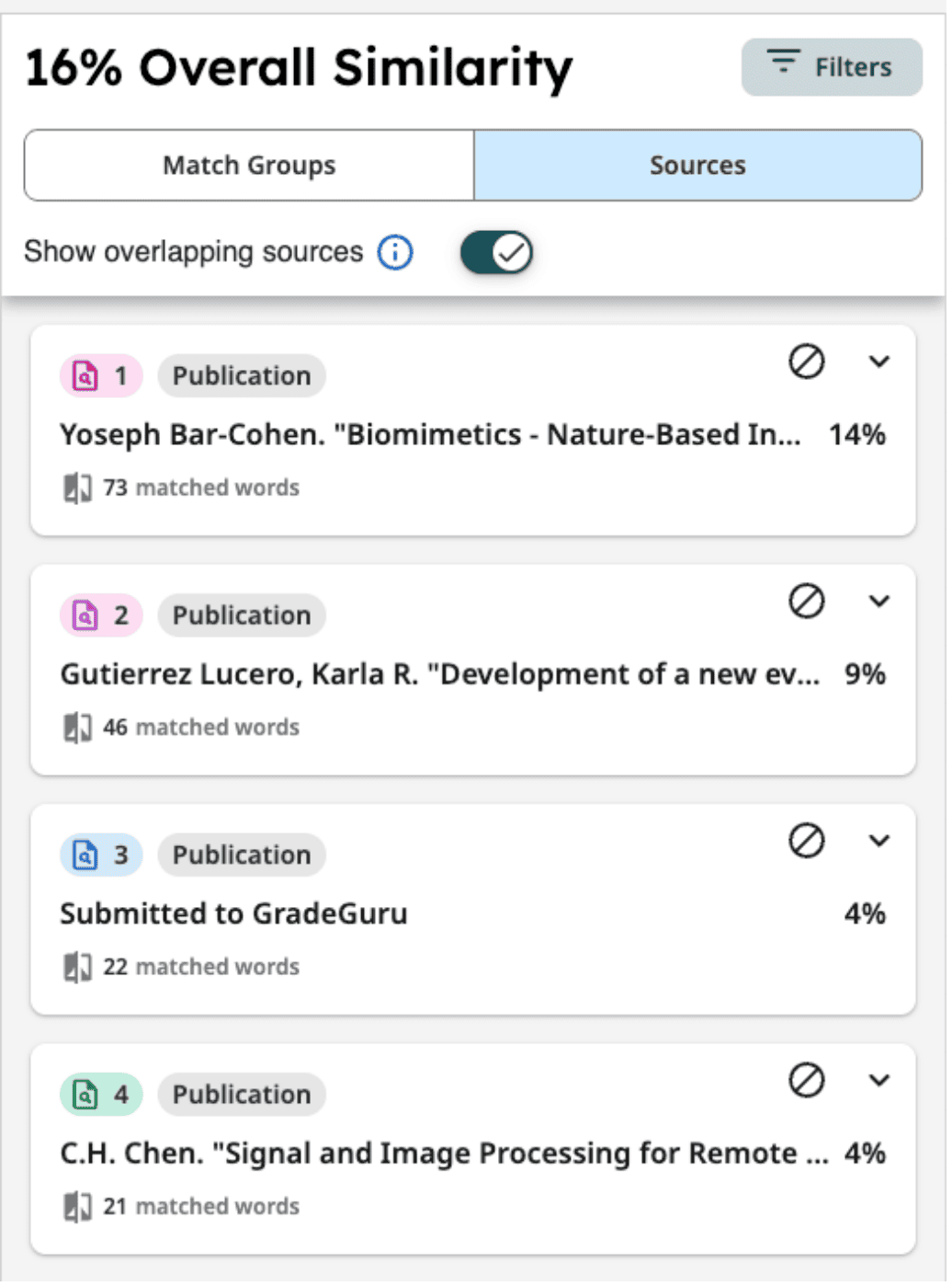 These results show that Turnitin is significantly more accurate for catching modified or manipulated content. Grammarly is useful for a surface-level check but should not be relied on for academic submission confidence. For instance, here's Turnitin's similarity report with 16% plagiarism score.