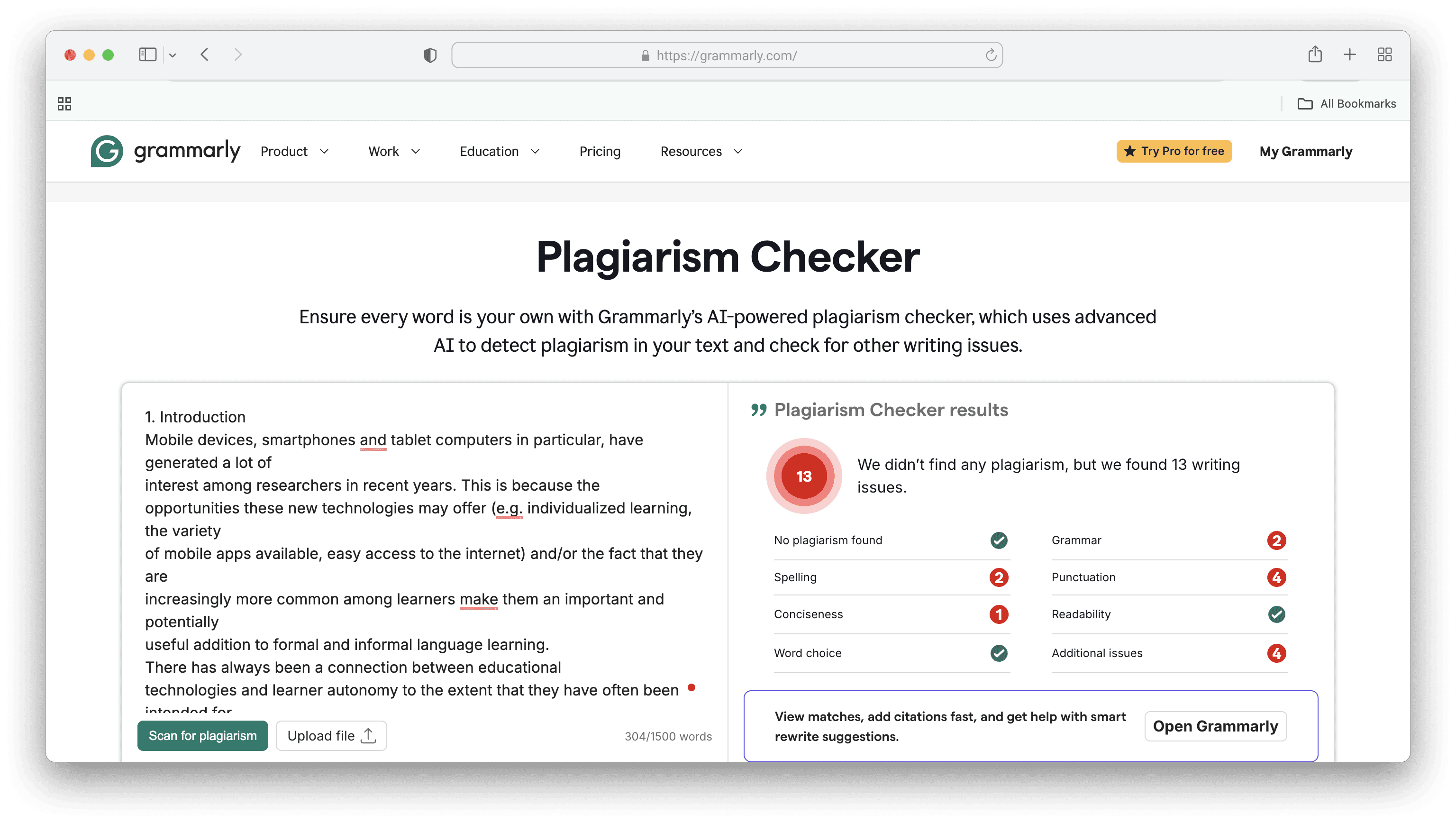 - Use Grammarly if you need ongoing writing support. It improves grammar, clarity, and tone in real time and works across every platform you write on. Its plagiarism checker is useful for web-based content but should not be your only check before academic submission.