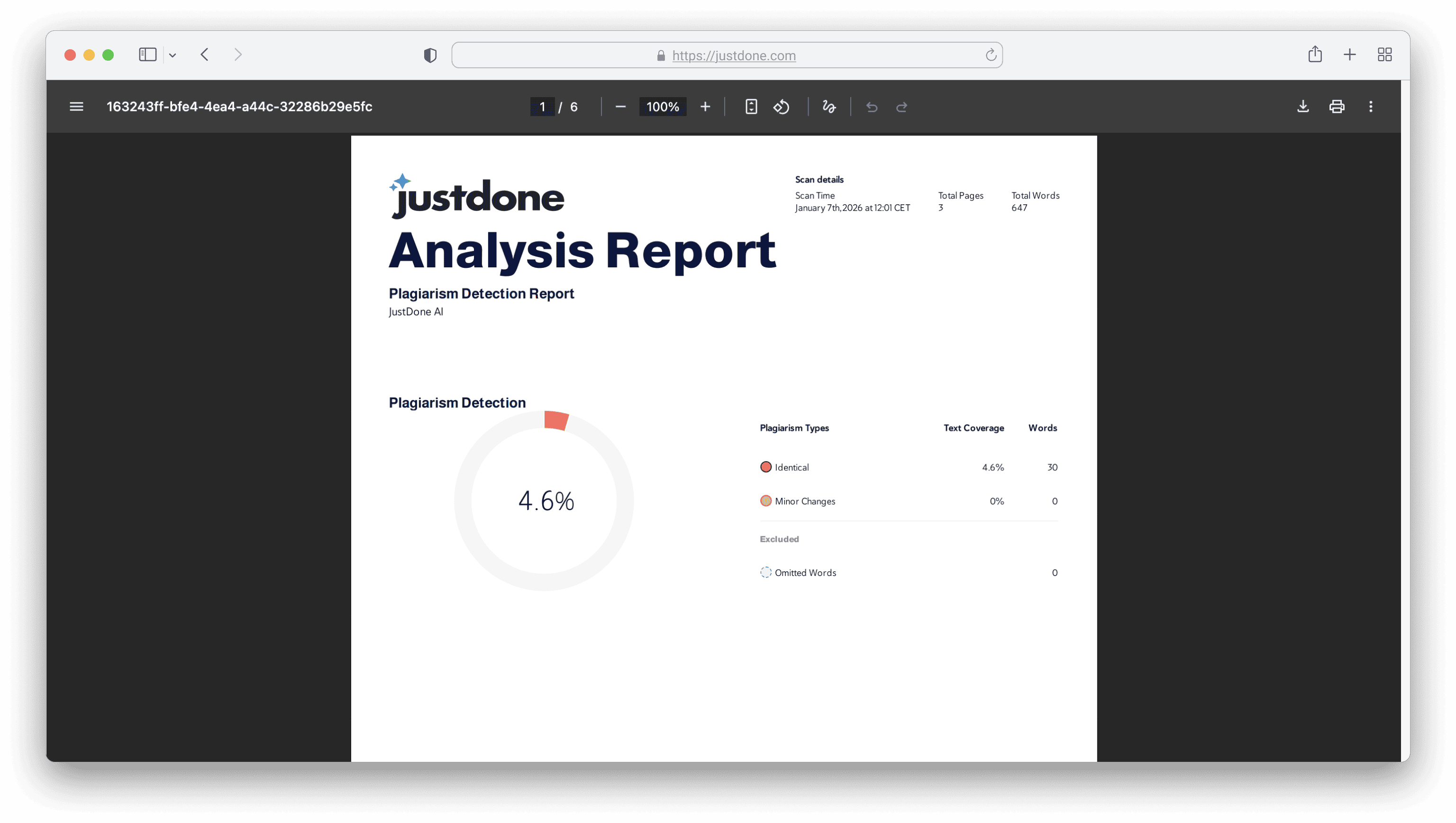 Here’s how JustDone Plagiarism checker presents its report: