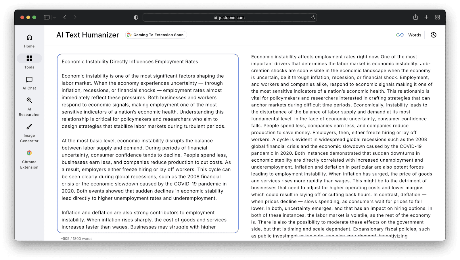 AI tools can enhance readability and polish language. For example, “Economic instability directly influences employment rates” is clearer than “It can be seen that economic instability affects employment rates.”