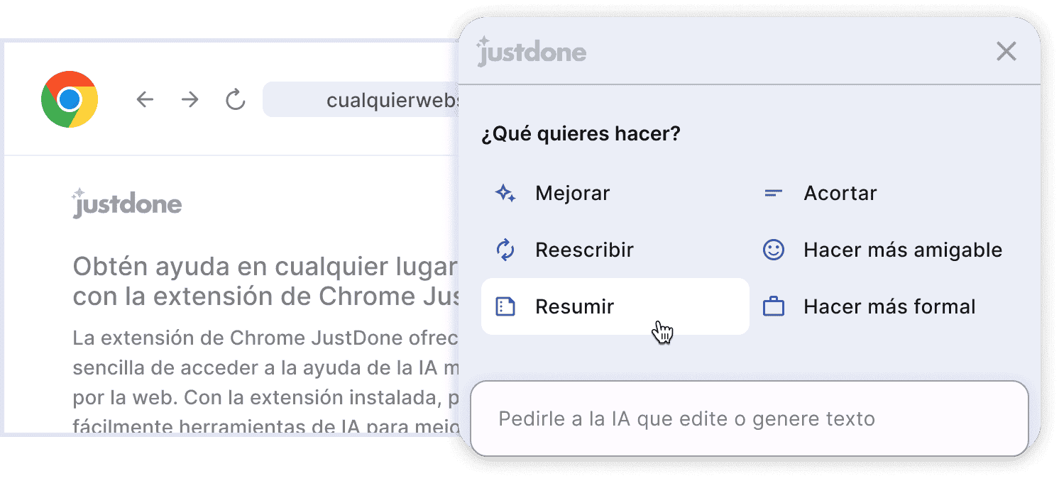 JustDone es un espacio de trabajo todo en uno diseñado para estudiantes y alumnos. Incluye un Detector de IA, un Humanizador, un Detector de plagio, un Resumidor, un Parafraseador IA, un Corrector ortográfico y herramientas adicionales para apoyar la redacción académica y la investigación. En lugar de cambiar entre varias aplicaciones, puedes redactar, reescribir, verificar la originalidad y perfeccionar tu trabajo en un solo flujo de trabajo.