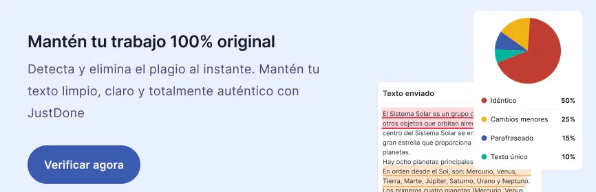 Con las herramientas y prácticas adecuadas, puedes eliminar el plagio de IA en línea sin estrés. Recomiendo utilizar plataformas de solución rápida como Detector de plagio de JustDone de forma gratuita, reescribir manualmente con un humanizador y aplicar algunas técnicas de parafraseo. No olvides que tu objetivo siempre debe ser comunicarte con tu propia voz, pero cumpliendo al mismo tiempo con los estándares académicos.