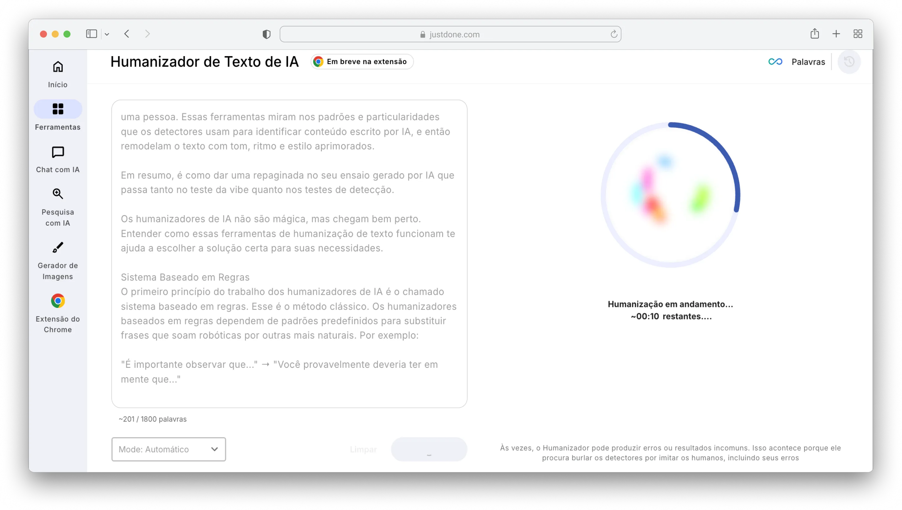Em vez de apenas trocar palavras como um dicionário de sinônimos, um bom humanizador altera a estrutura de suas frases, muda o ritmo e reescreve a formulação de uma maneira mais natural. Isso faz com que seu texto soe mais como algo que você realmente diria ou escreveria, e não como algo copiado ou reescrito por uma máquina. O objetivo não é trapacear, mas tornar sua redação genuinamente sua, mantendo as ideias centrais intactas.