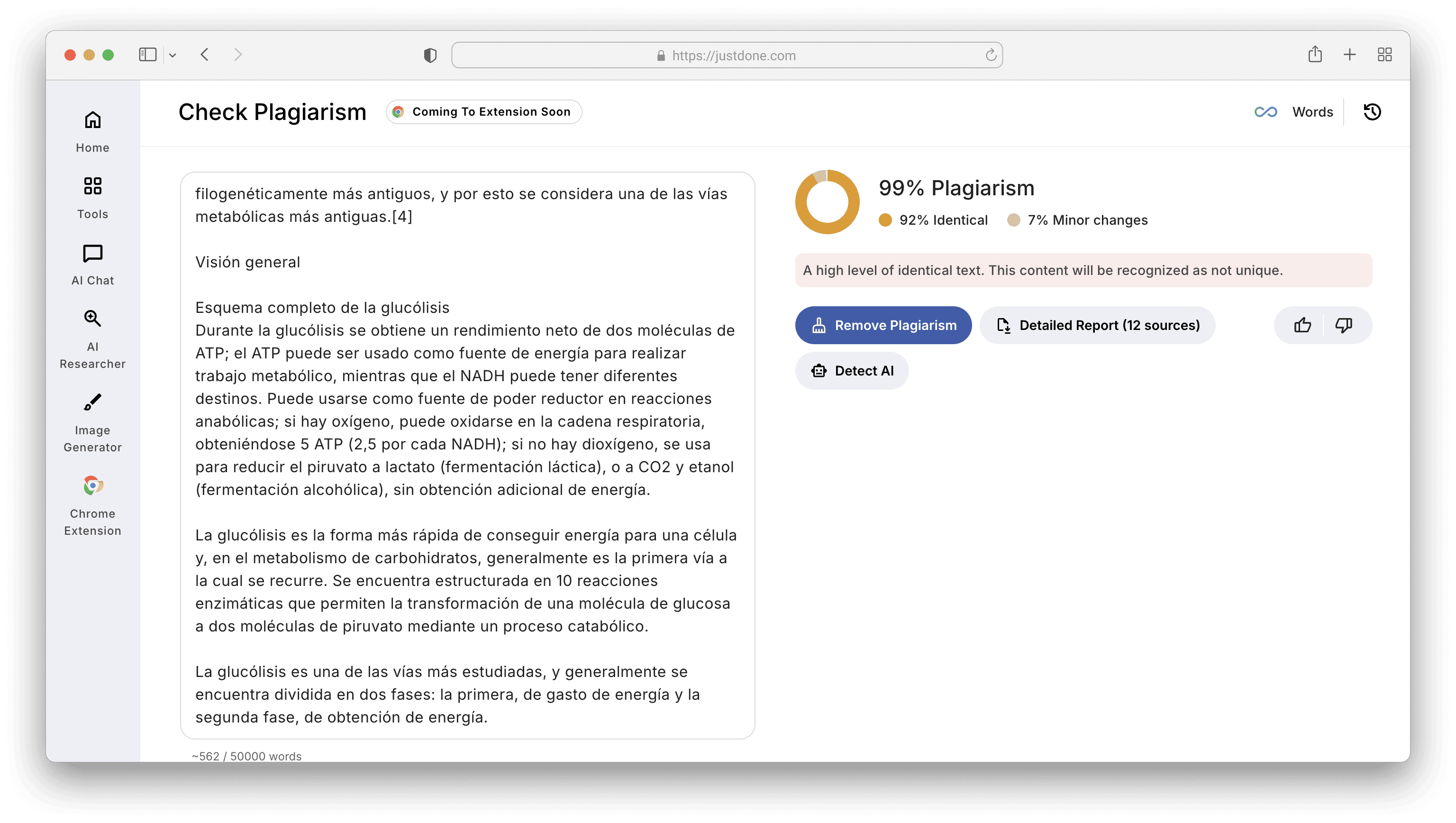 - Verifique seu rascunho antes que seu professor o faça. Leia as fontes, escreva de memória, cite tudo e use o Verificador de Plágio do JustDone antes de entregar.